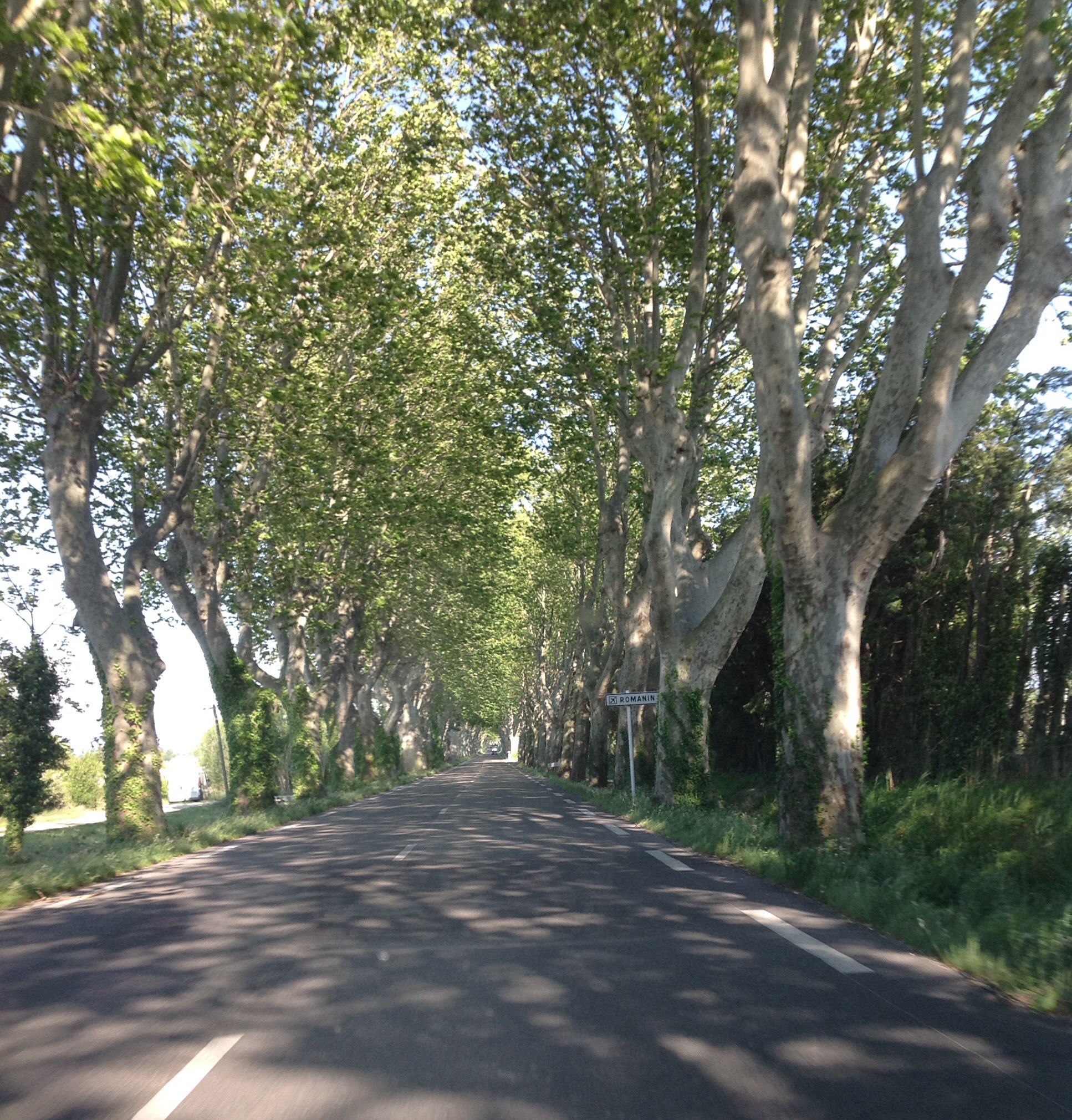 After we drove in the nearby countryside to visit two wineries and bought some provisions for Amante. This area is covered with cyclists, and I wish we had bikes and the legs to pedal them! The landscape here is amazing, vineyards, iris gardens and narrow roads lines with Plane trees nestled up against Les Alpilles.