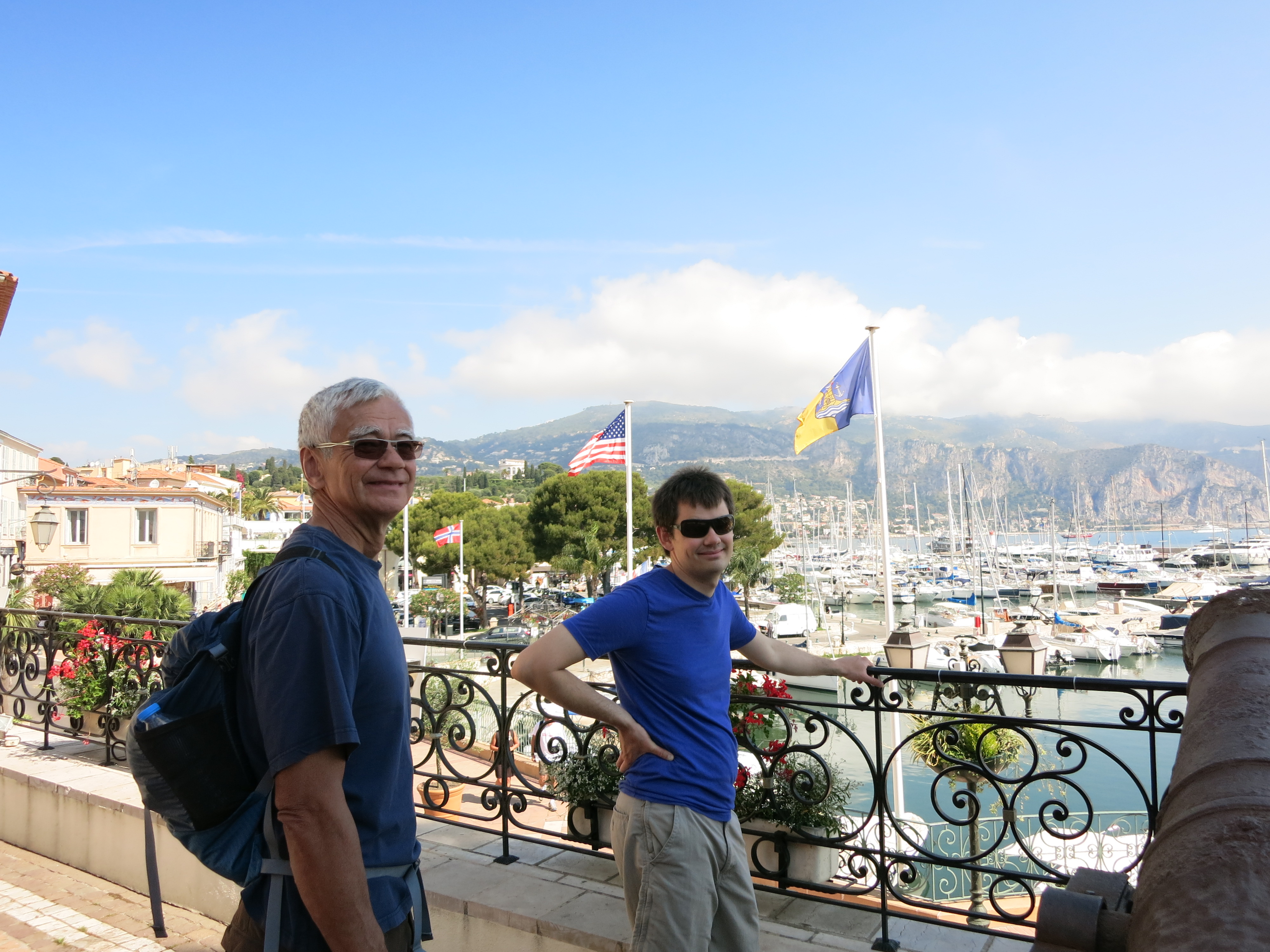 The bigger town is Villefrance with a concentration of colorful block buildings at the waterfront. Walking around in search of the night’s restaurant was a treat. We returned the next morning for bread, something I plan to give up any day now, and something our Italian Captain needs fresh every day. He doesn’t get bread in a plastic wrapper, or frozen food. So somebody’s job is to go buy bread every day we are in port. Not a bad thing, very European, citizen of the world thing.