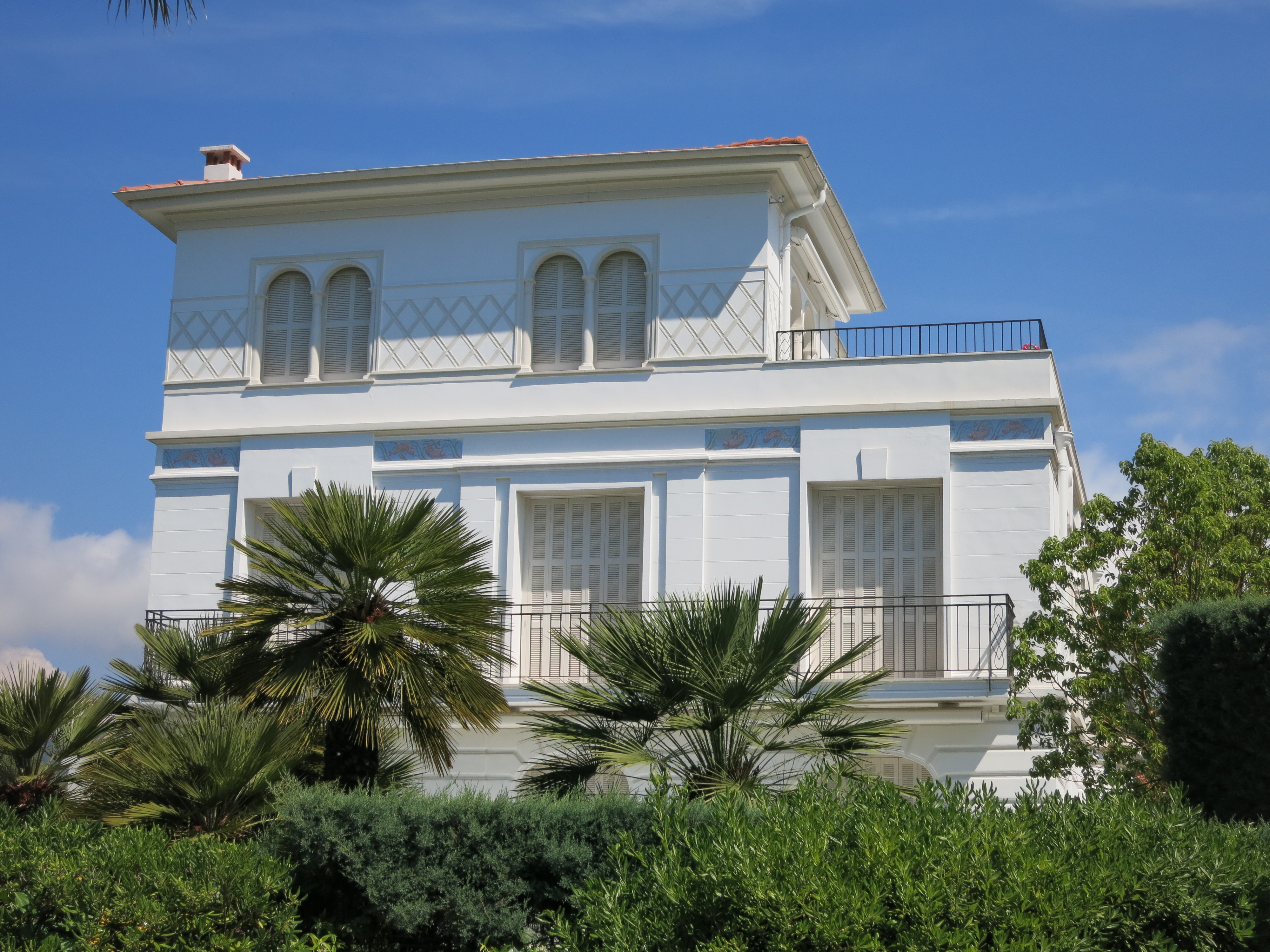 The neighborhood is quite fine, David Niven lived here a time, and Paul Allen and Andrew Lloyd Webber are or have been reported as Cap Ferrat residents. The landscaping is equal to the houses for stop and gape factor. The flowers per square inch must exceed some legal limit- I imagine residents sending their representatives to court to argue for lower penalties for over-planting beautiful flowering plants, the fuscia bouganvillia covering nearly every vertical surface. The smell of some white flowering vine is intoxicating, dizzing. This is the area my sailing buddy Mary said she could live, if forced to live in France. Well chosen, Maria.