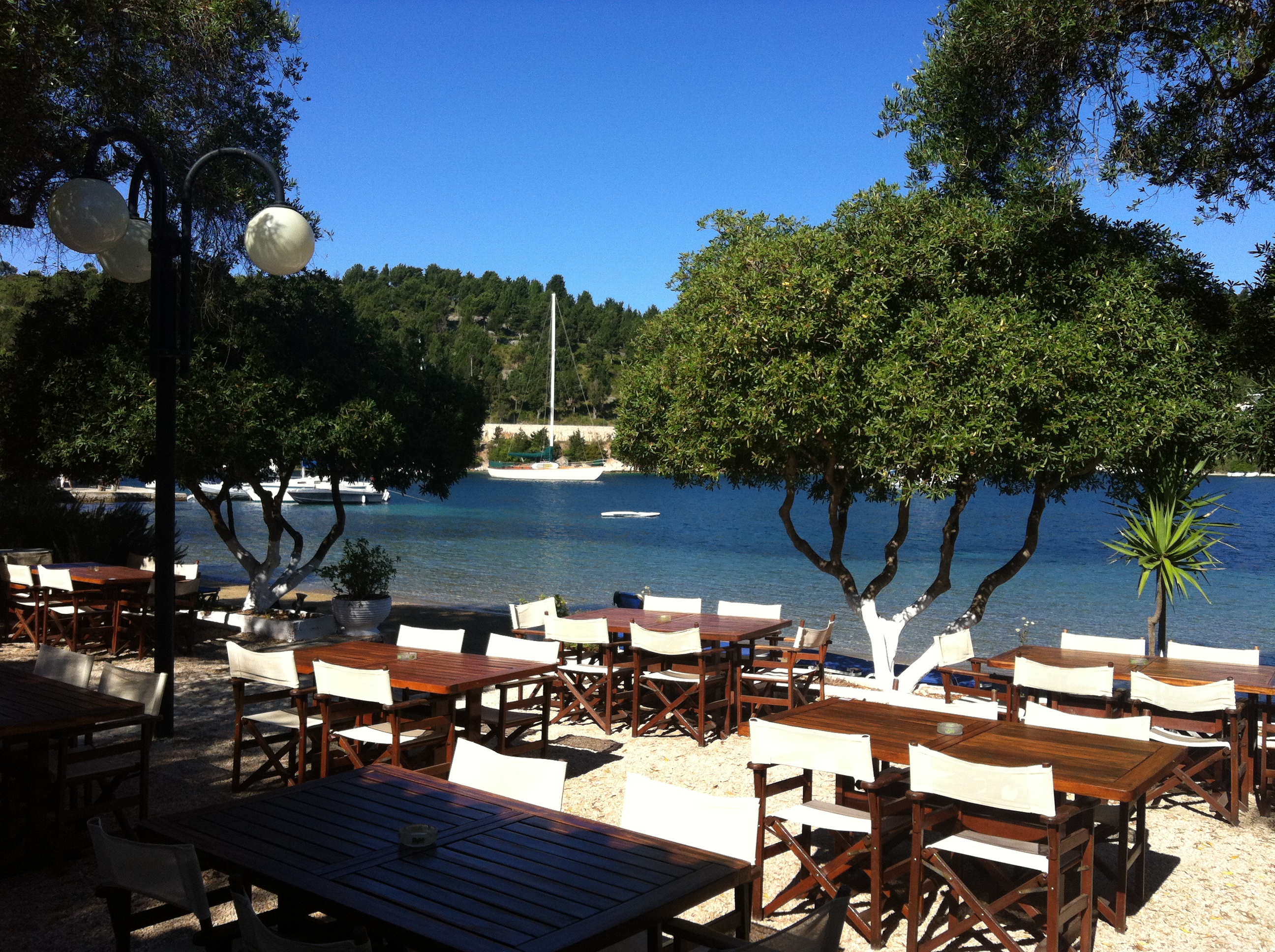 We didn’t wait the obligatory 30 minutes before jumping in the cool, clear water and had a nice long snorkel. After resting, we went to the little beach resort I had found on a jog the morning before, Mongonissi beach resort with Pan and Theo’s taverna.