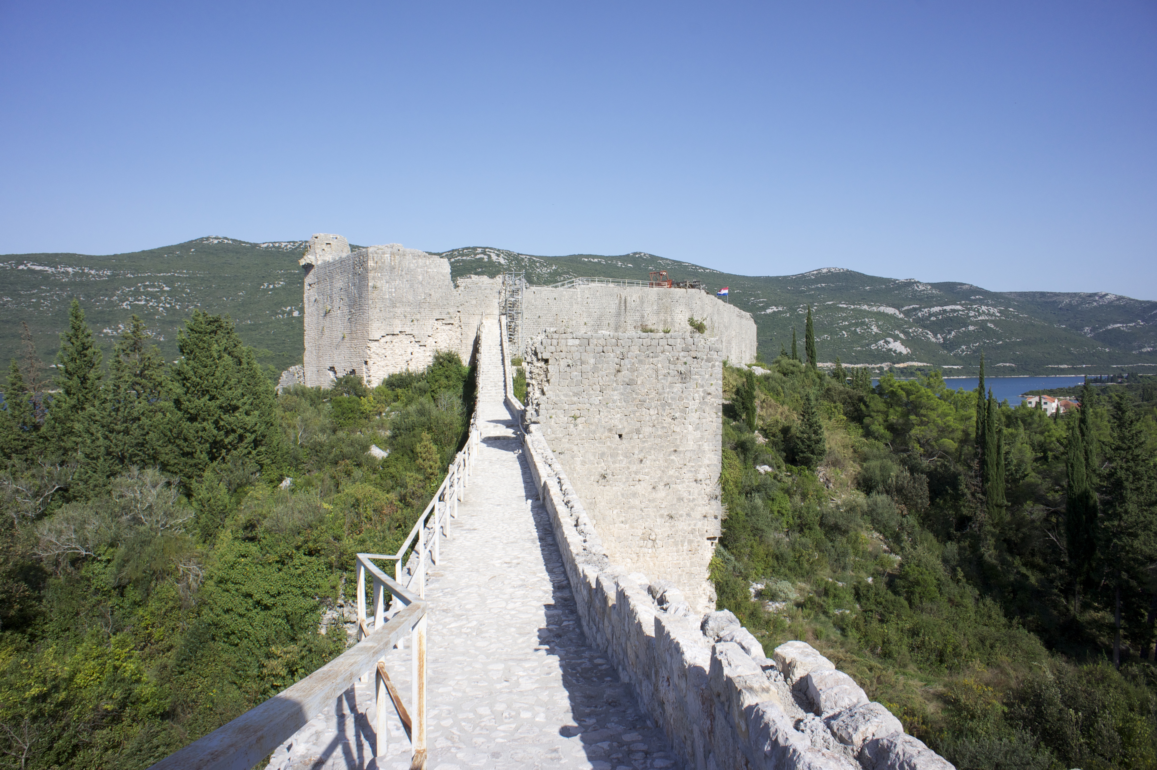 We anchored near Ston, and took the dinghy in to see the Ston Saltworks, a salt collection that still operates today the way it has since Medieval time. Ston connects the Pelješik peninsula to the mainland, so a wall was built to protect the peninsula. We hiked the 1.5 kilometers in the hottest day we have had since July. On the other side, in Mali Ston, there are exactly 0.0, that is ZERO ice cream stands. I recommend you skip it.