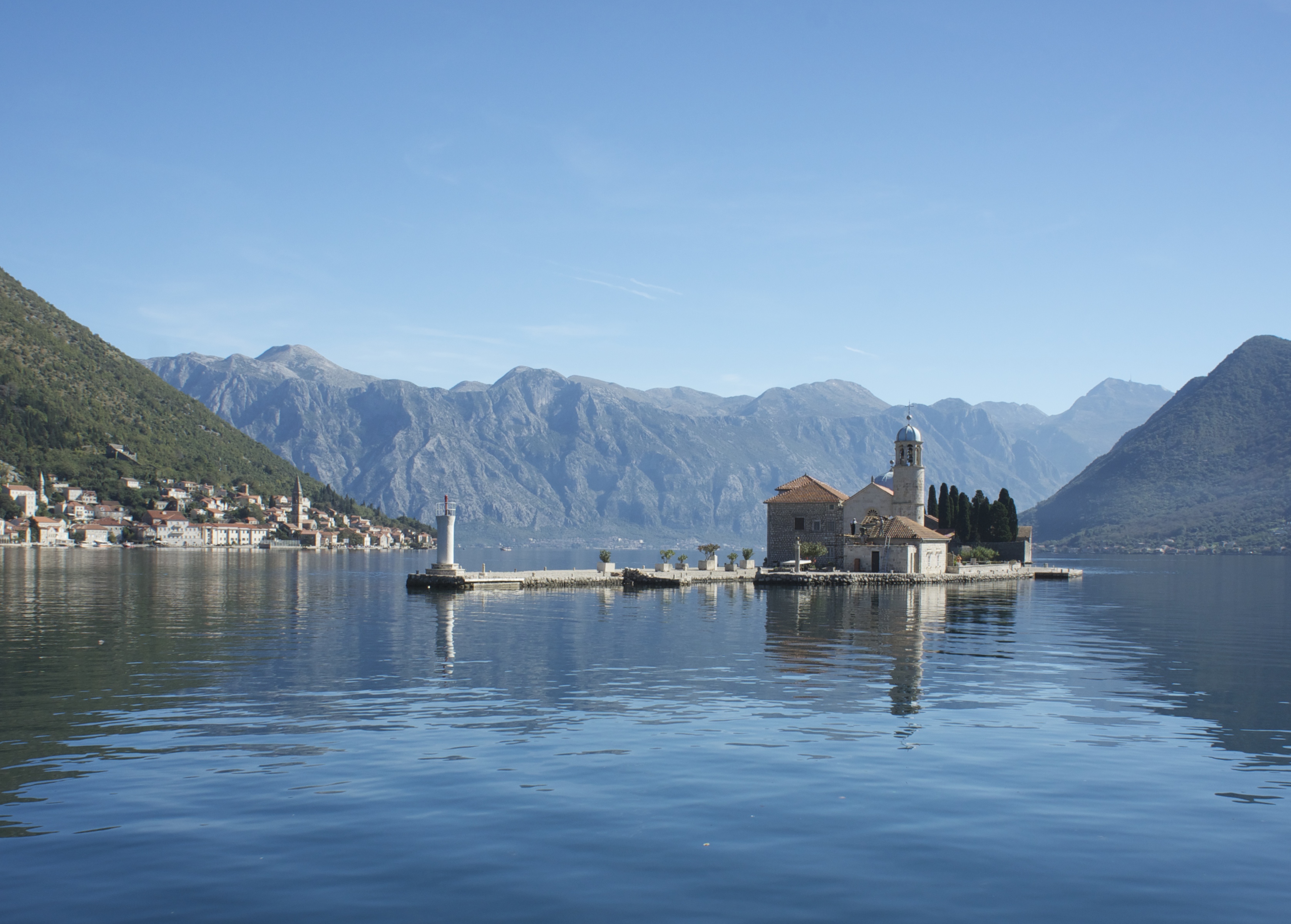 We had two beautiful days in Montenegro before getting trapped by weather. The first day we checked in, and got all our proof of leaving the EU paperwork done, and walked around the Porto Montenegro complex, shopped ate, walked the Riva of Tivat. The mega complex at Porto Montenegro is stunning. They have made a giant marina on the remains of an old naval complex, adding condominiums, shops, restaurants. The small town of Tivat seems to empty into port for the paseo or passegiata, the biggest danger being kids on bicycles zooming between wobbly legged sailors. It warranted a one day, one night visit, but that’s about all it needs. WE decided to take Amante into the bay of Kotor, with its famous church islands: