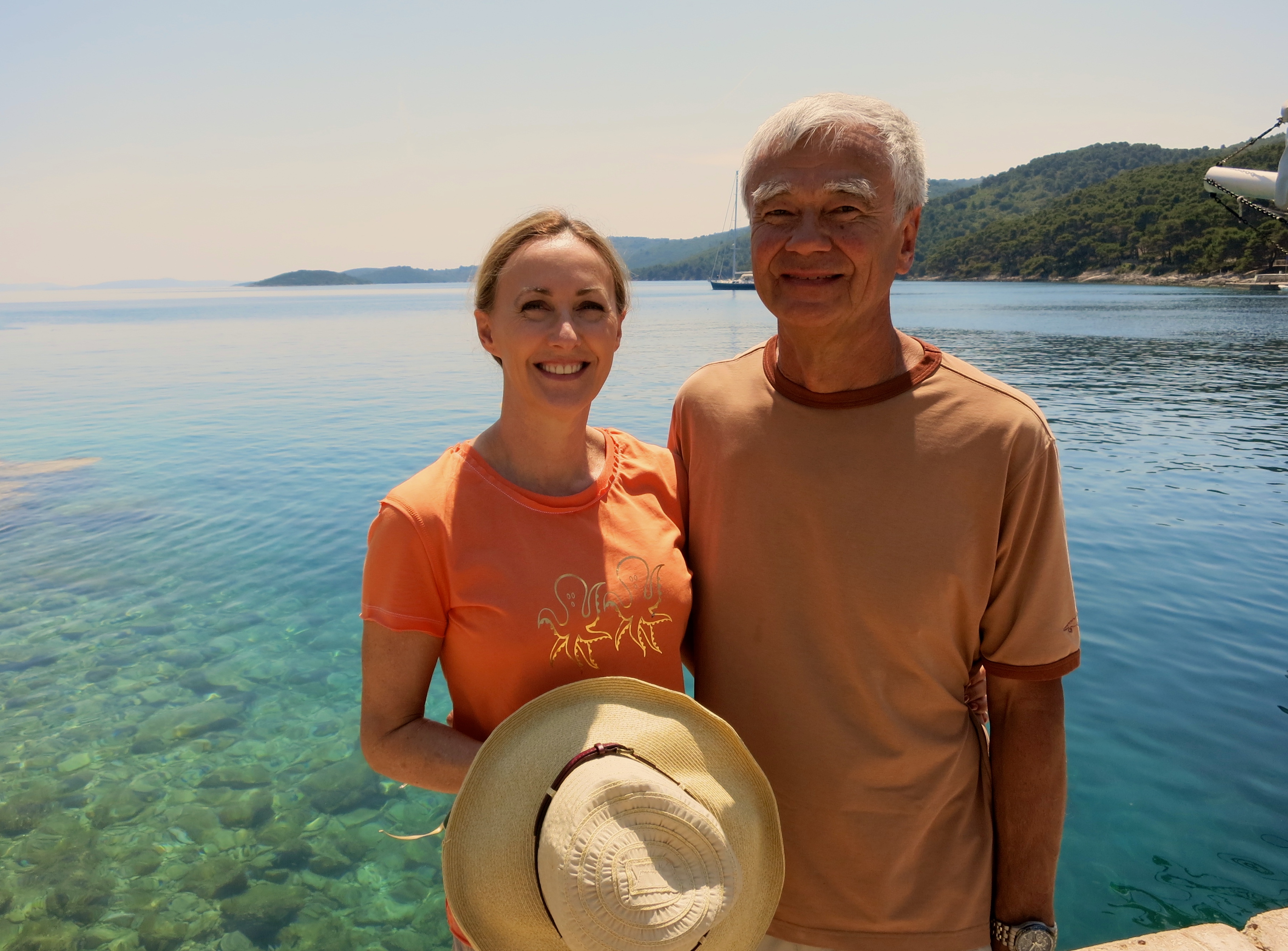 We went ashore for a walk in the small but charming little island port with its small fishing boats, it’s one church of St. Nicolas, and it’s smiling cruise ship full of English cyclists doing the Croatia bike vacation on a floating bike mover.