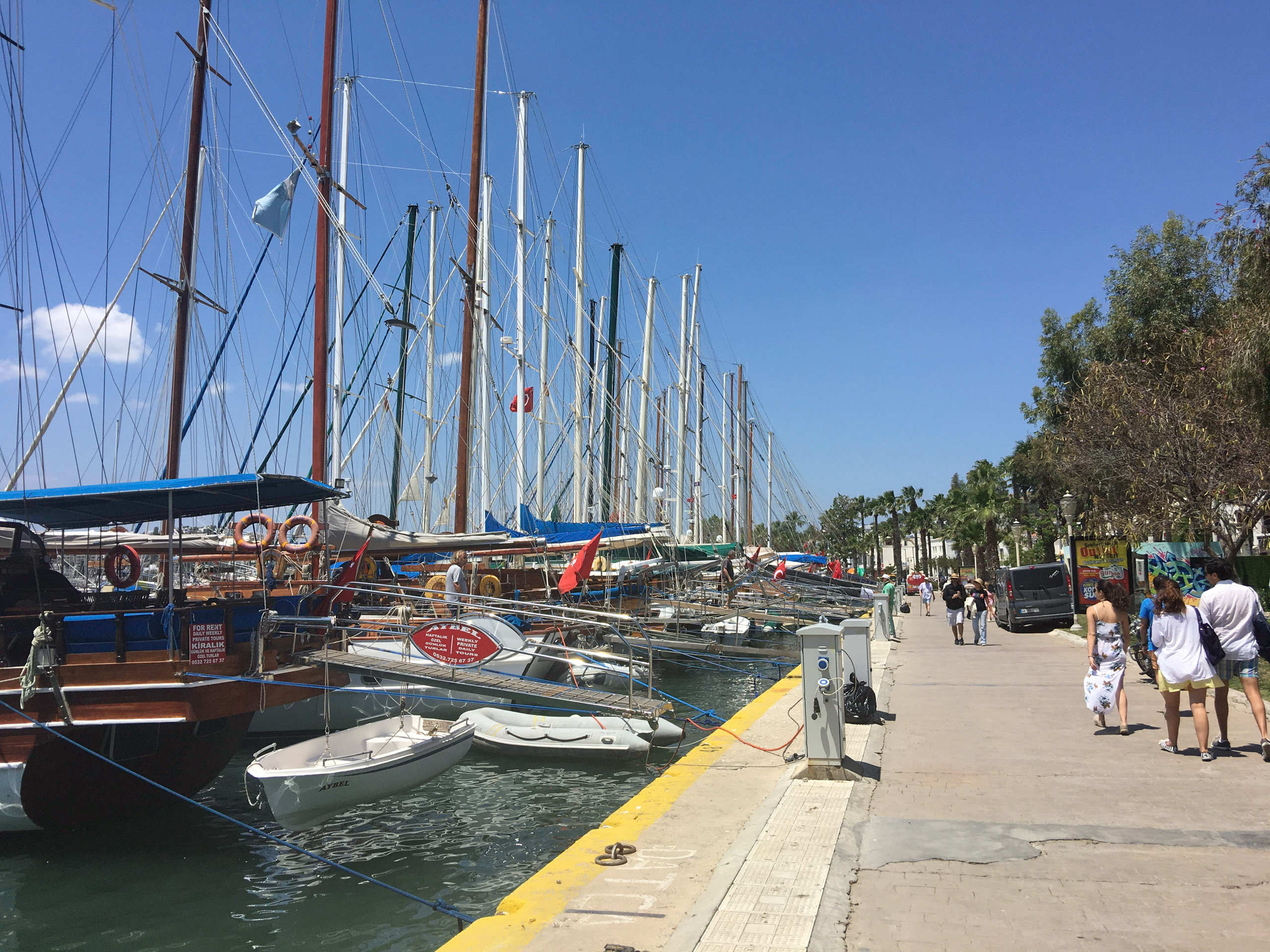 The waterfront in Bodrum was more much crowded with tourists than in Greece.